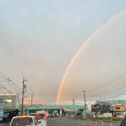 通勤の朝、二重の虹を見ました。停車中の撮影です。